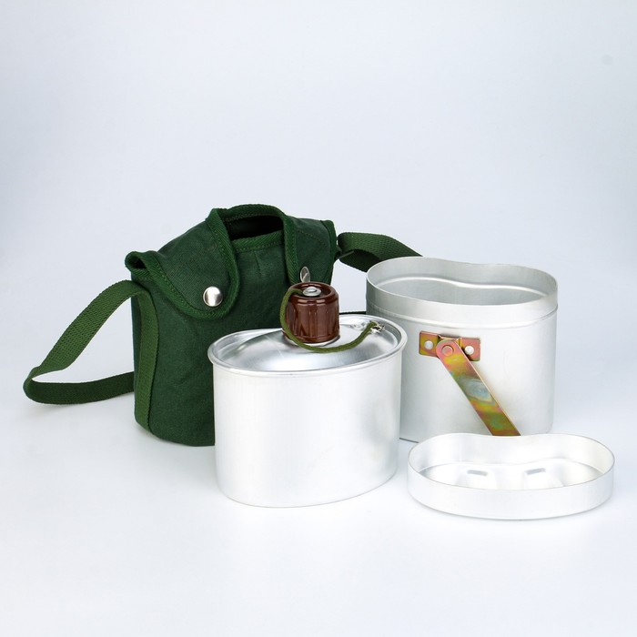 Фляжка армейская походная Adventure, 1 л, для воды, с котелком, металл, зелёный чехол