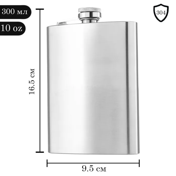 Фляжка для алкоголя 300 мл, нержавеющая сталь, подарочная, армейская, 10 oz — Характеристики