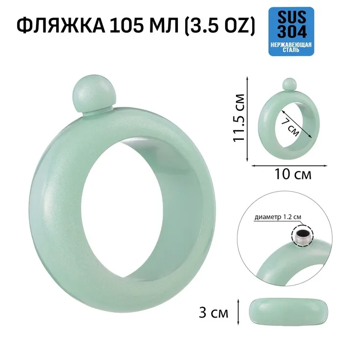 Фляжка для алкоголя Мастер К «Браслет», 105 мл, нержавеющая сталь, подарочная, женская, коррозионностойкая сталь, зелёная — Характеристики