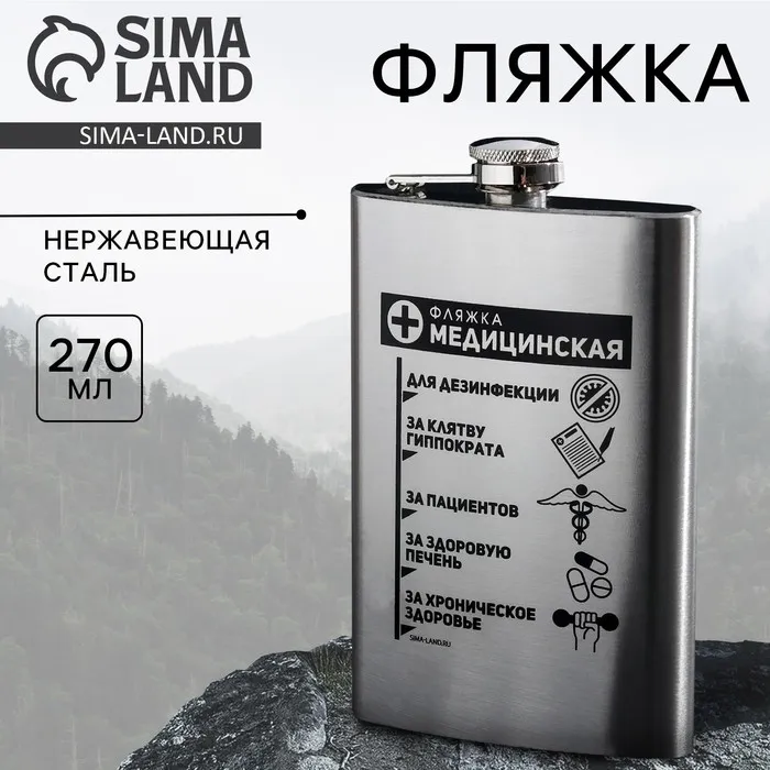 Фляжка для алкоголя 240 мл, нержавеющая сталь, подарочная, армейская, 8 oz