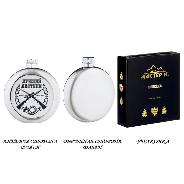 Фляжка «Лучший охотник», нержавеющая сталь, круглая, 150 мл, 5 oz — Характеристики