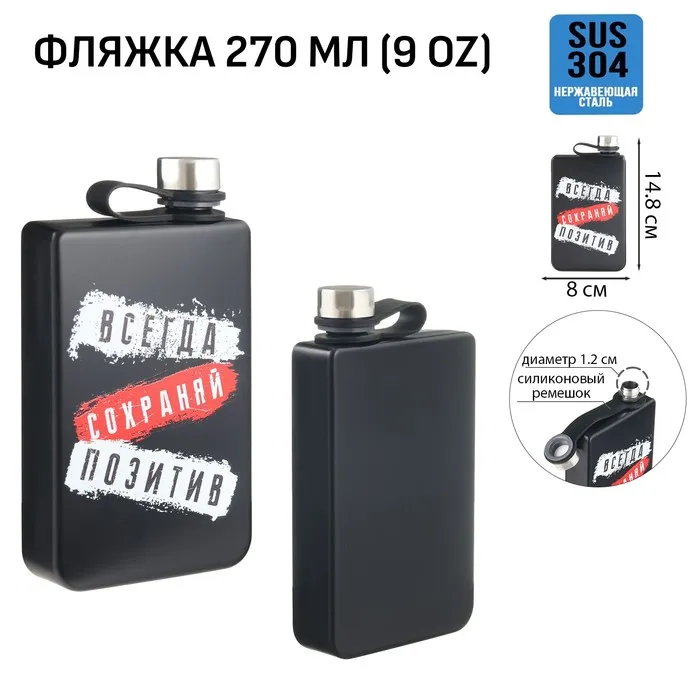 • Объём фляжки составляет 270 мл, что позволяет взять с собой достаточное количество напитка.