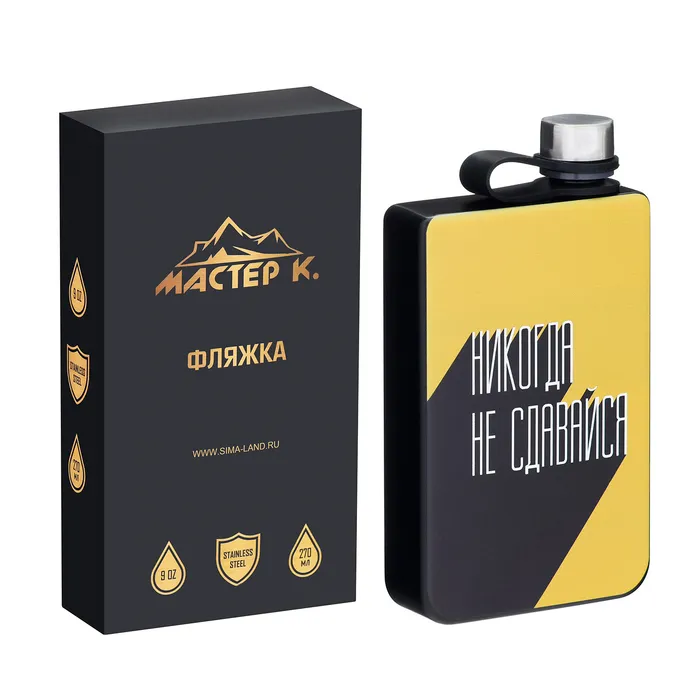 Фляжка «Никогда не сдавайся», нержавеющая сталь, 270 мл, 9 oz — Характеристики