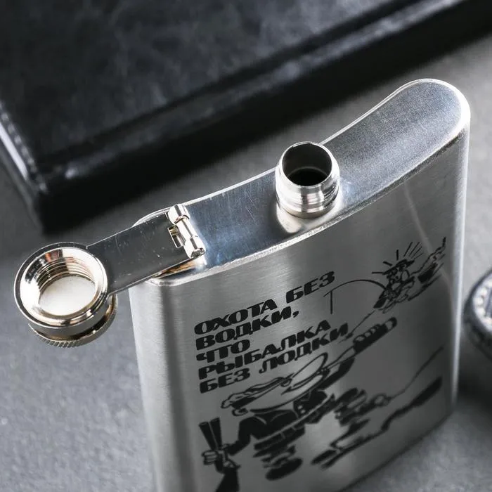 Фляжка «Охота без водки» 300 мл, серебристая стает не только удобным помощником, но и стильным аксессуаром и придаст вам шарм и подчеркнет индивидуальность.