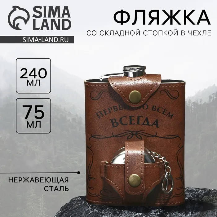 Фляжка со складной стопкой в чехле «Первый во всем», 240 мл / 75 мл — Характеристики