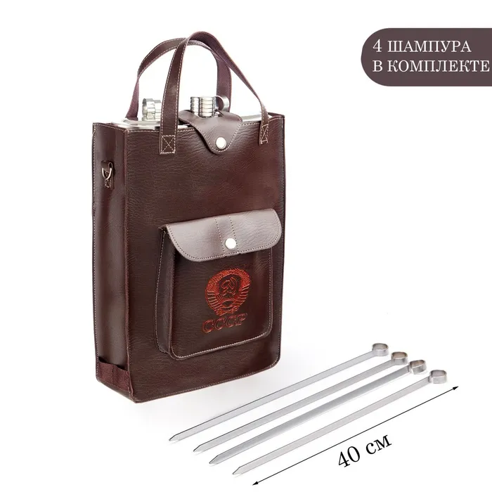 Фляжка «СССР», нержавеющая сталь, чехол, 5.15 л, с 4 шампурами l-40 см