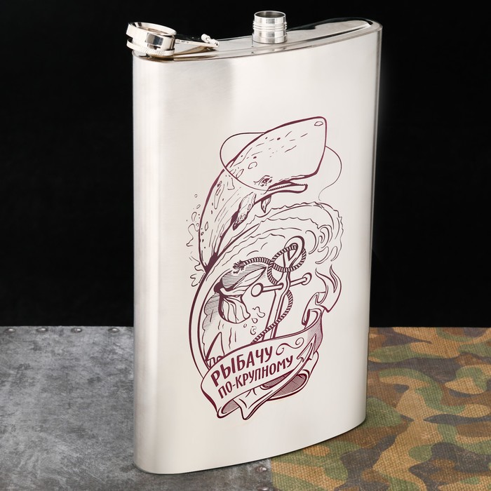 Фляжка XXL «Рыбачу по-крупному», 1920 мл, серебристая — Характеристики