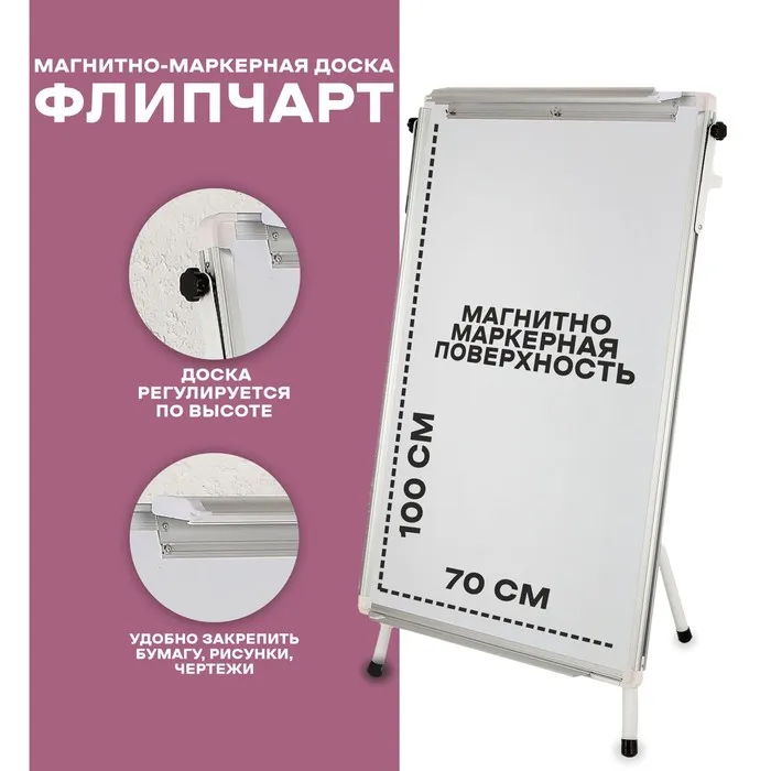 Флипчарт-магнитно-маркерная доска, регулируется по высоте, размер доски — 70×100 см — Характеристики