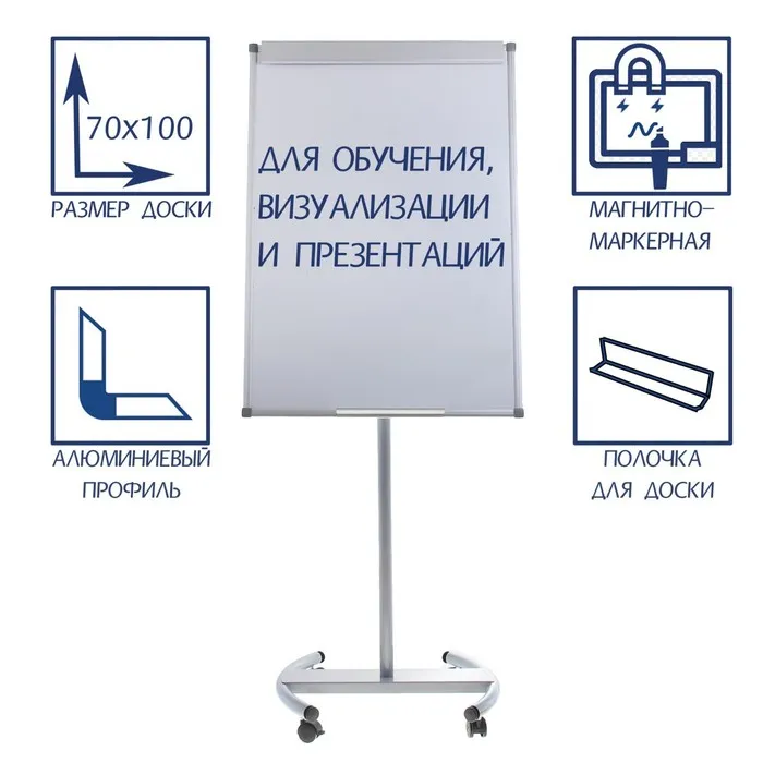 Металлическая составляющая покрытия делает доску магнитной.Алюминиевая рама обеспечивает надежность и прочность при работе с доской. Блокнот крепится при помощи неподвижных винтов.