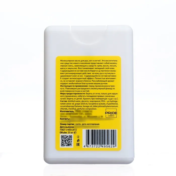 - Содержащиеся в составе масло бораго и д-пантенол оказывают регенерирующее действие на кожу рук и кутикулы и удерживают влагу в них.