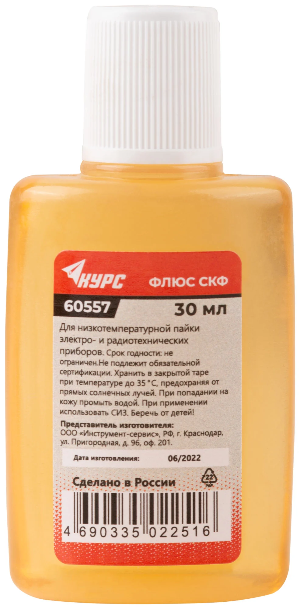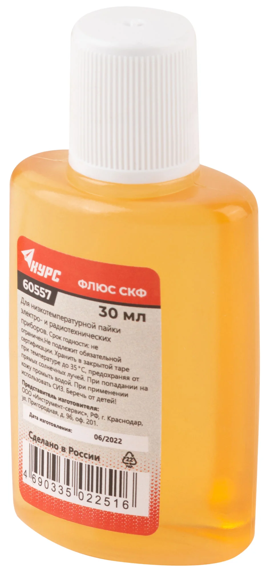 Флюс СКФ от КУРС объемом 30 мл идеально подходит для низкотемпературной пайки электро- и радиотехнических приборов. С его помощью вы сможете легко соединять детали без риска появления коррозии и необходимости последующей промывки.