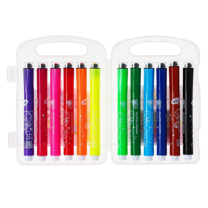 Обладают яркими насыщенными цветами.Удобная форма корпуса.Процесс раскрашивания становится легким.Длина письма составляет 600 м: такого расхода хватит надолго.Фломастеры изготовлены на водной основе, поэтому они безопасны и легко смываются с большинства материалов и кожи.Наконечник, устойчивый к продавливанию, не проваливается внутрь корпуса и не деформируется даже при сильном нажатии.Рекомендованы для детей от 3-х лет.