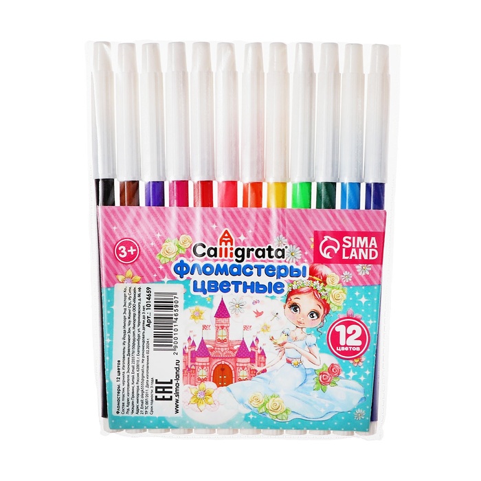 Фломастеры 12 цветов Calligrata «Принцесса», невентилируемый колпачок — Характеристики