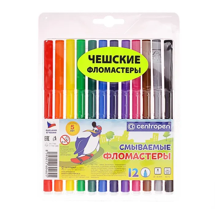Фломастеры 12 цветов Centropen 7790 Washable 1.8 мм, блистер, европодвес, линия 1.0 мм — Характеристики