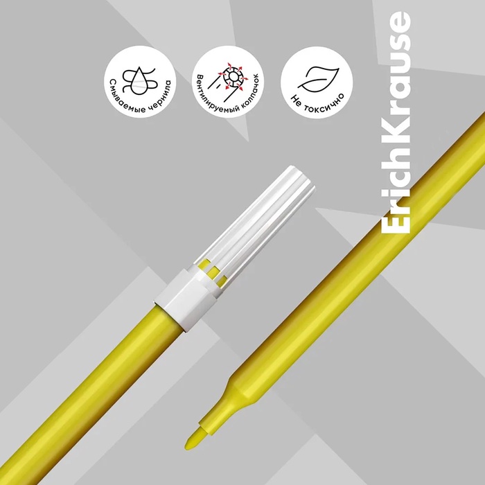 Фломастеры ErichKrause® Basic со смываемыми чернилами на водной основе.
