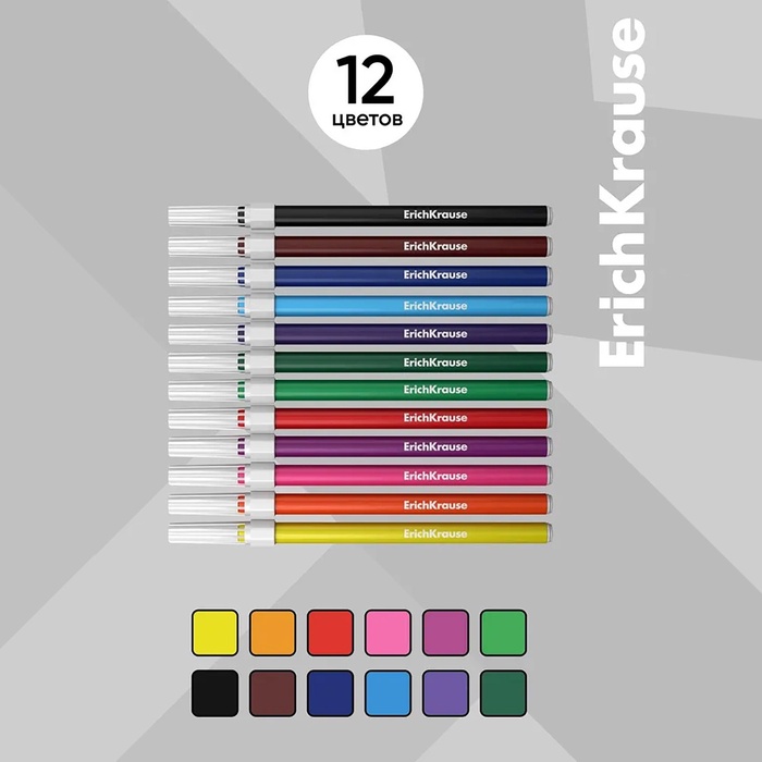 Фломастеры 12 цветов ErichKrause Basic, на водной основ, вентилируемый колпачок — Характеристики