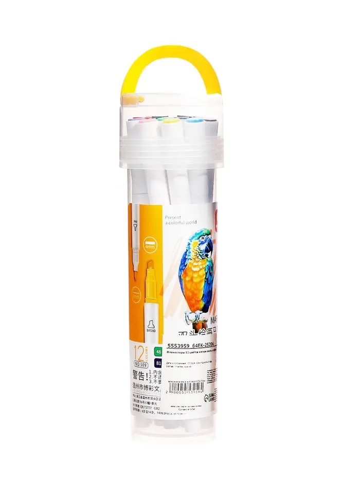Фломастеры 12 цветов, мягкая кисть в тубусе — Характеристики