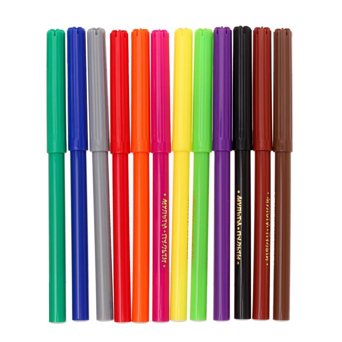 Фломастеры «Мульти-Пульти» серии «Енот во Франции» представлены с легкосмываемыми чернилами и вентилируемым колпачком. В наборе 12 цветов: чёрный, коричневый, серый, фиолетовый, розовый, бардовый, красный, оранжевый, синий, тёмно-зеленый, салатовый, жёлтый. Корпус круглой формы изготовлен из полипропилена и имеет удобную круглую зону захвата. Тип наконечника – конический. Толщина линии составляет 2 мм, длина письма – не менее 260 метров. Фломастеры сохраняют стабильный цвет при письме на протяжении всего использования. Смываемые фломастеры на водной основе нетоксичны. Упакованы в картонную коробку. Количество цветов: 12, Тип наконечника: конический, Длина линии письма: 260 метров.