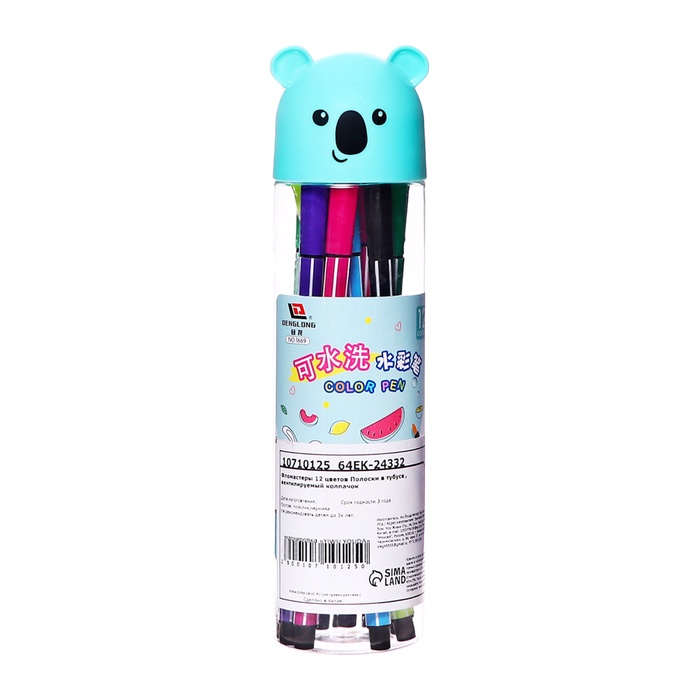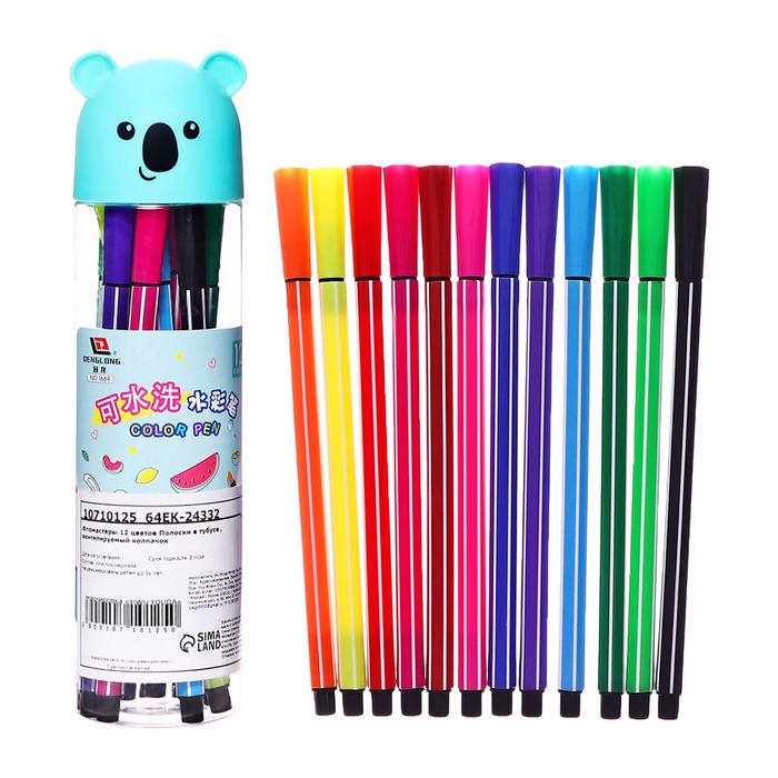 Фломастеры 12 цветов Полоски в тубусе Коала зеленая, вентилируемый колпачок — Характеристики