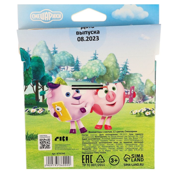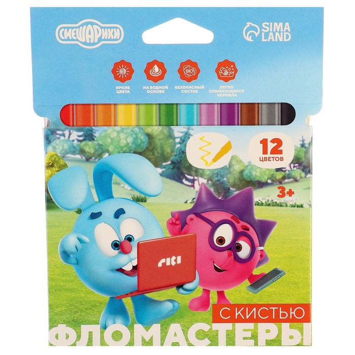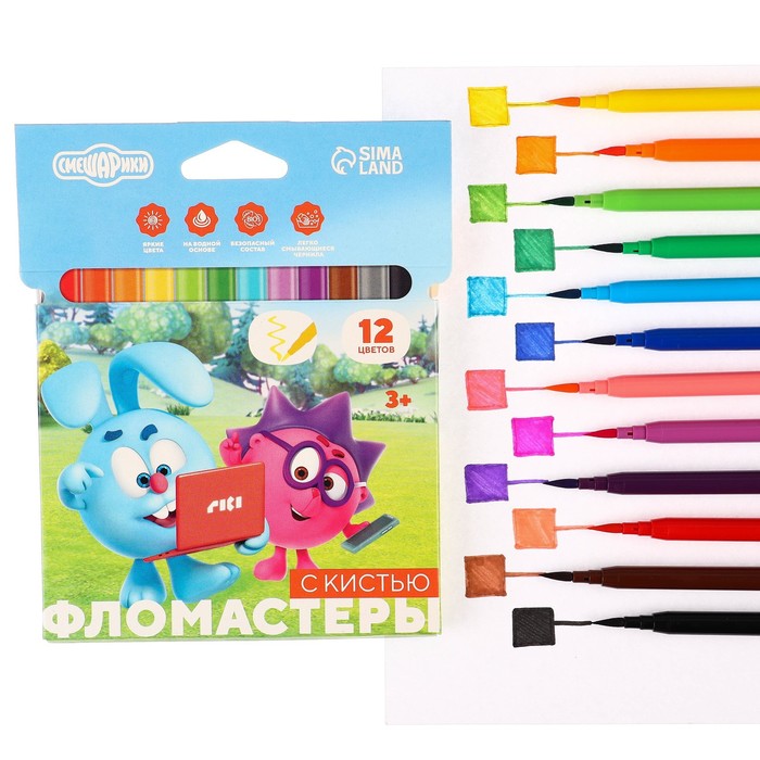 Фломастеры 12 цветов, с кистью, «Смешарики» — Характеристики