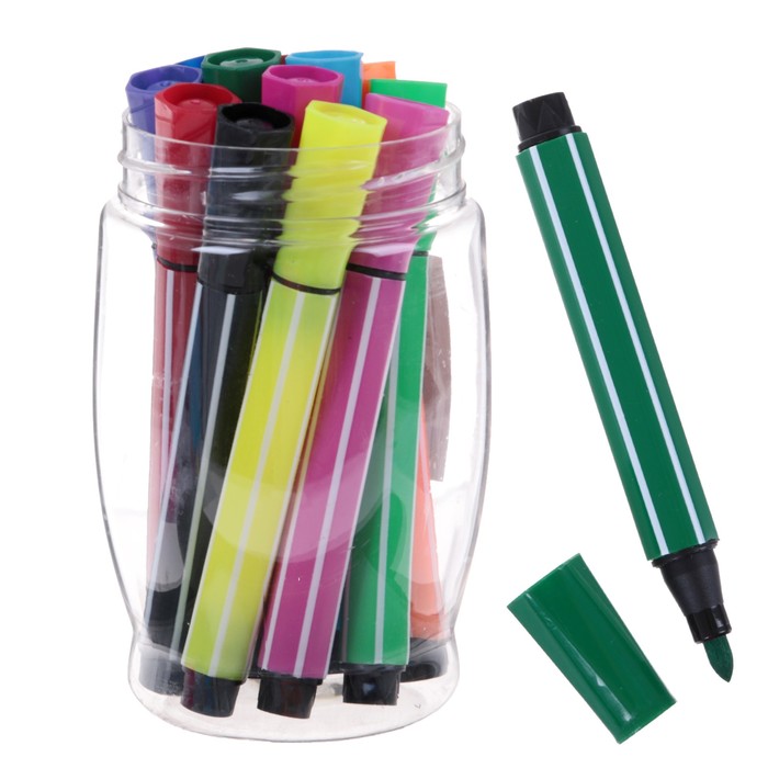 Обладают яркими насыщенными цветами.Удобная форма корпуса.Процесс раскрашивания становится легким.Длина письма составляет 600 м: такого расхода хватит надолго.Фломастеры изготовлены на водной основе, поэтому они безопасны и легко смываются с большинства материалов и кожи.Наконечник, устойчивый к продавливанию, не проваливается внутрь корпуса и не деформируется даже при сильном нажатии.Рекомендованы для детей от 3-х лет.
