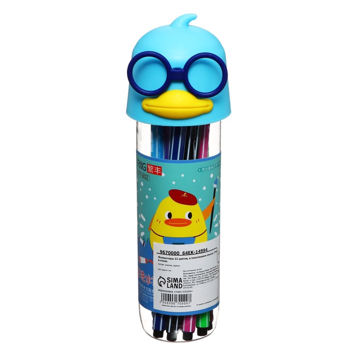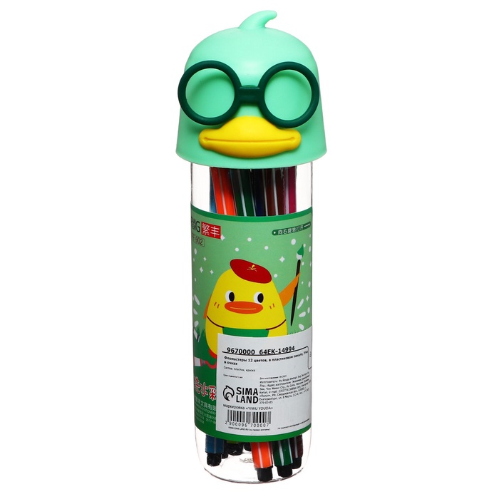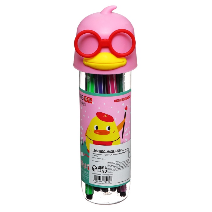 Фломастеры 12 цветов «Утка в очках», в пластиковом пенале, МИКС — Характеристики