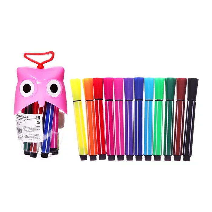 Фломастеры 12 цветов в пластиковом тубусе Сова розовая, ТОЛСТЫЕ вентилируемый колпачок — Характеристики