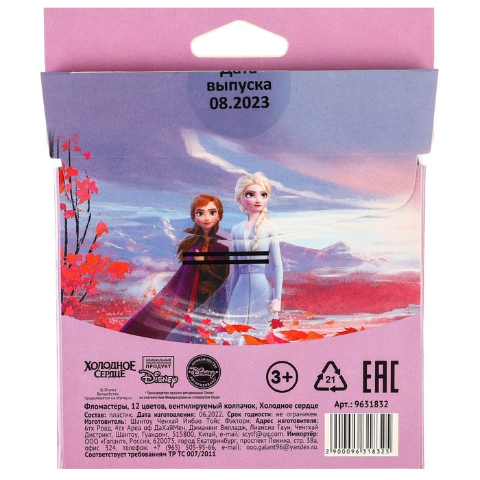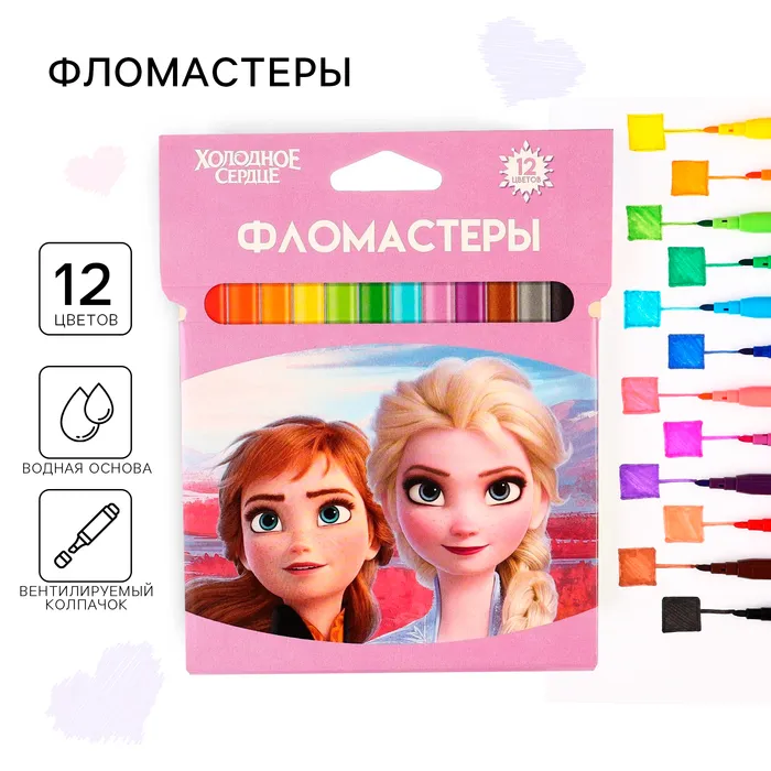 Фломастеры 12 цветов, вентилируемый колпачок «Холодное сердце» — Характеристики