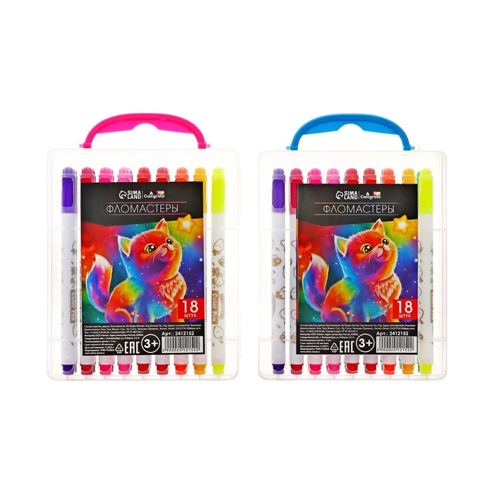 Фломастеры 18 цветов «Мышка», в пластиковом пенале с ручкой, вентилируемый колпачок, МИКС — Характеристики
