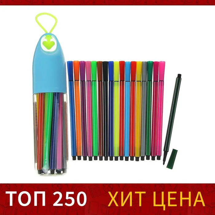 Фломастеры 18 цветов, в пластиковом тубусе с ручкой, вентилируемый колпачок, МИКС — Характеристики