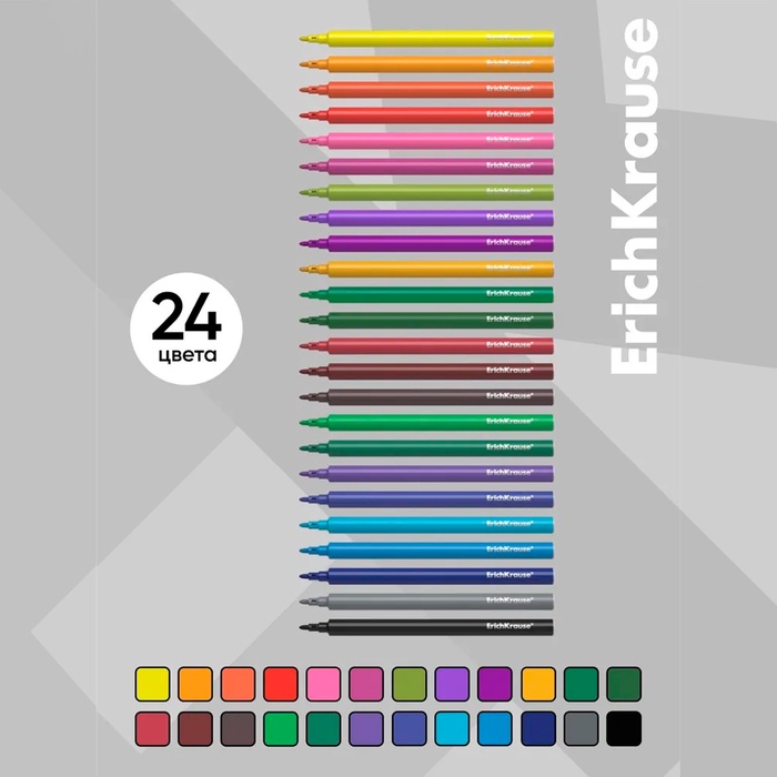 Фломастеры 24 цвета ErichKrause, вентилируемый колпачок, в футляре с европодвесом — Характеристики