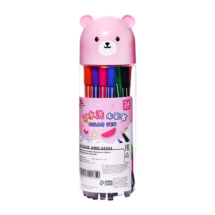 Фломастеры 24 цвета Полоски в тубусе вентилируемый колпачок, Мишка розовый — Характеристики