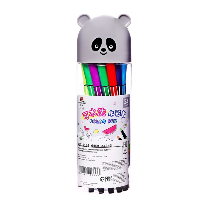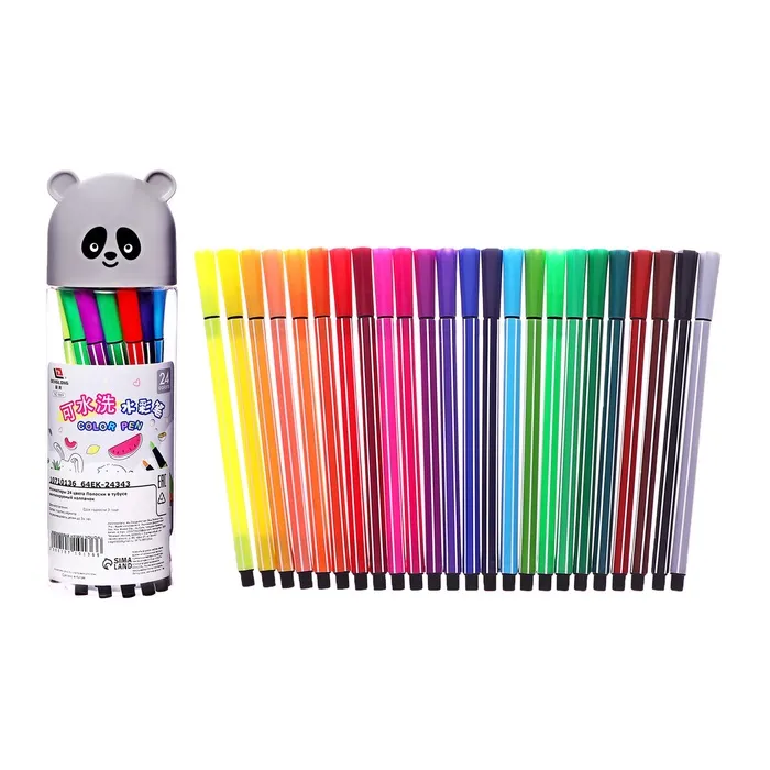 Фломастеры 24 цвета Полоски в тубусе вентилируемый колпачок, Панда серая — Характеристики