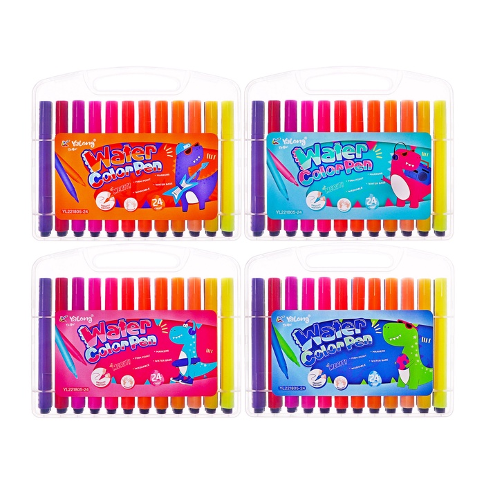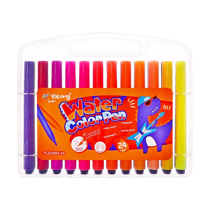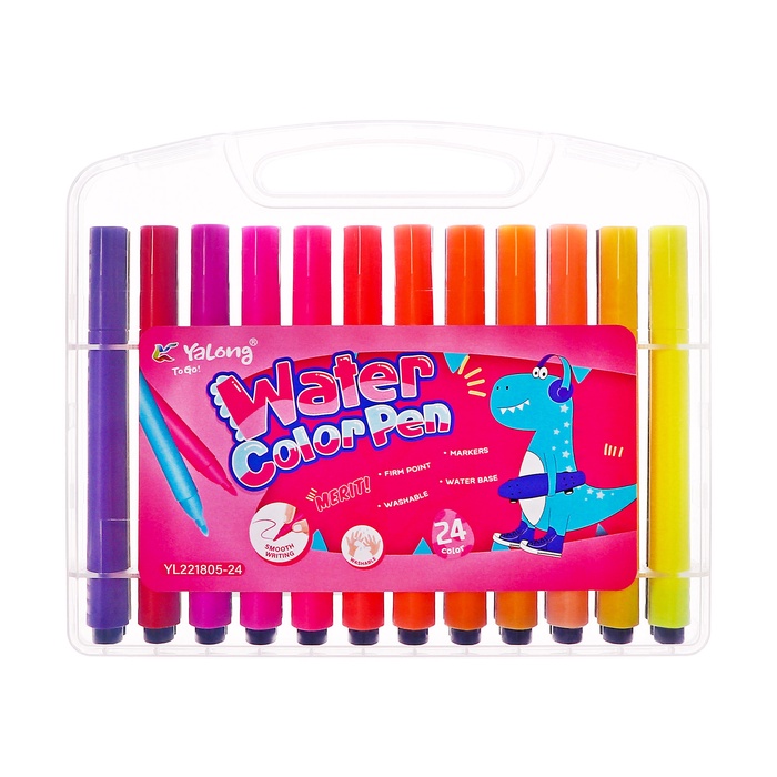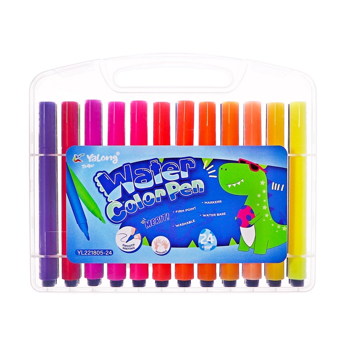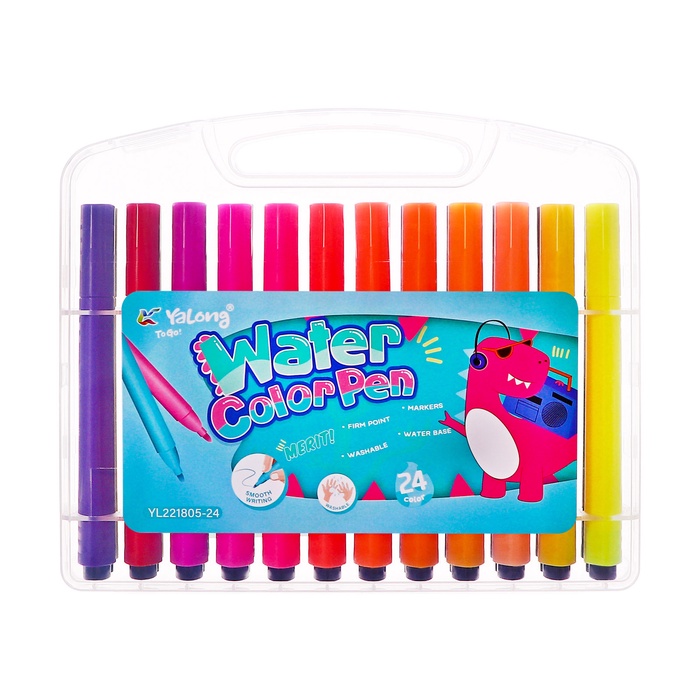 Фломастеры 24 цвета с пулевидным наконечником, в пластиковом пенале Дино МИКС — Характеристики
