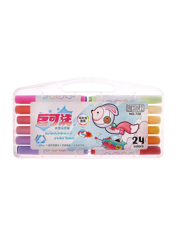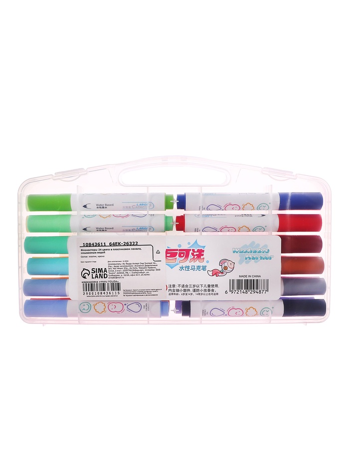 Фломастеры 24 цвета в пластиковом пенала, смываемые водой — Характеристики