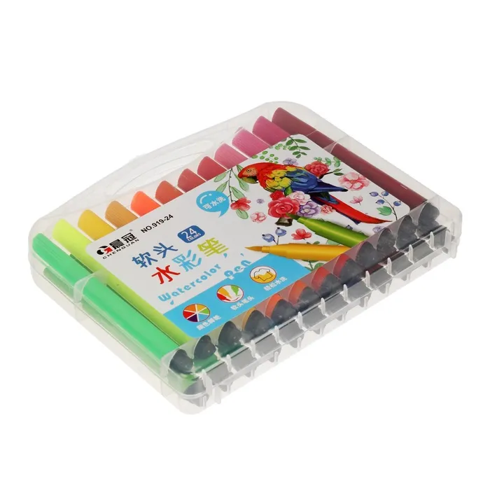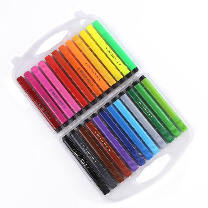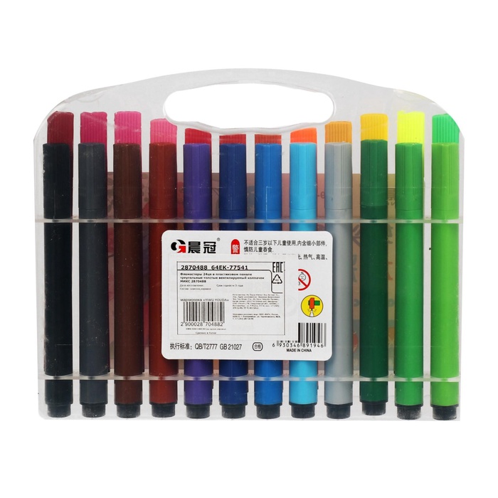 Фломастеры 24 цвета, в пластиковом пенале, треугольные, утолщённые, вентилируемый колпачок, МИКС — Характеристики