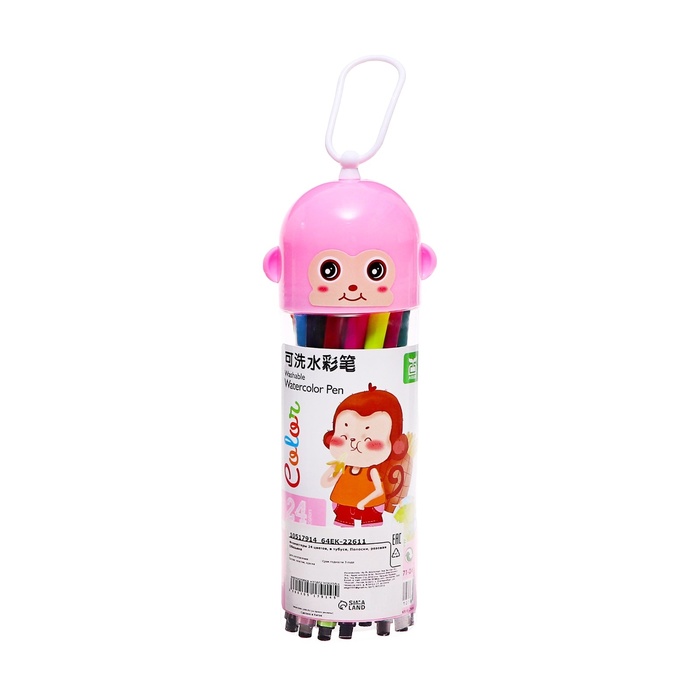 Фломастеры 24 цветов, в тубусе, Полоски, розовая Обезьяна — Характеристики