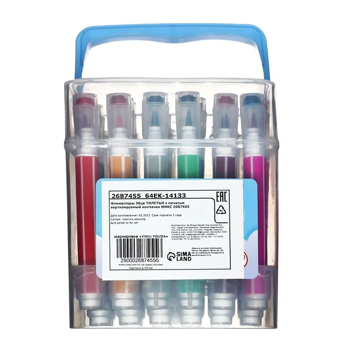 Фломастеры 36 цветов, с печатью, вентилируемый колпачок, МИКС — Характеристики