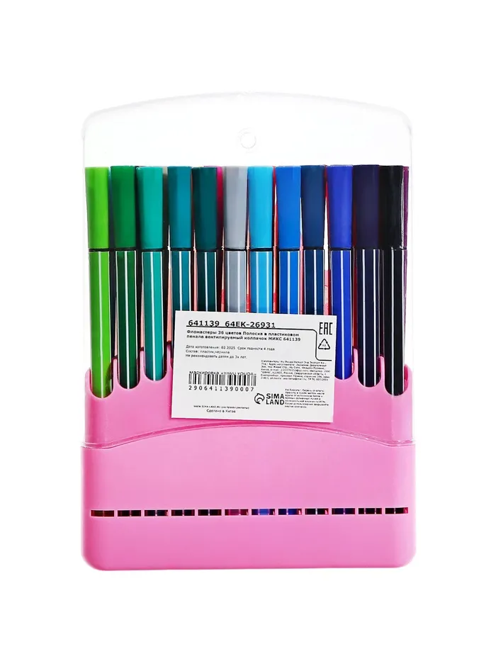 Фломастеры 36цв. "Полоска" МИКС – отлично зарекомендовали себя среди детей и взрослых. Они идеально подходят для рисования благодаря своей яркой и сочной палитре, легко отстирываются от одежды и кожи, а также имеют прочный пластиковый корпус и пишущий узел.
