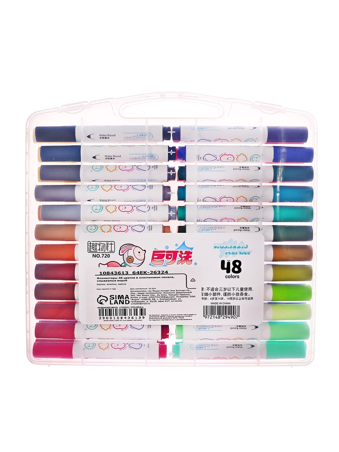 Фломастеры 48 цветов в пластиковом пенала, смываемые водой — Характеристики