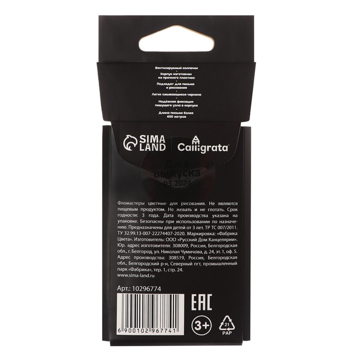 Фломастеры 6 цветов Calligrata «Капибара», классические, картонный пенал — Характеристики