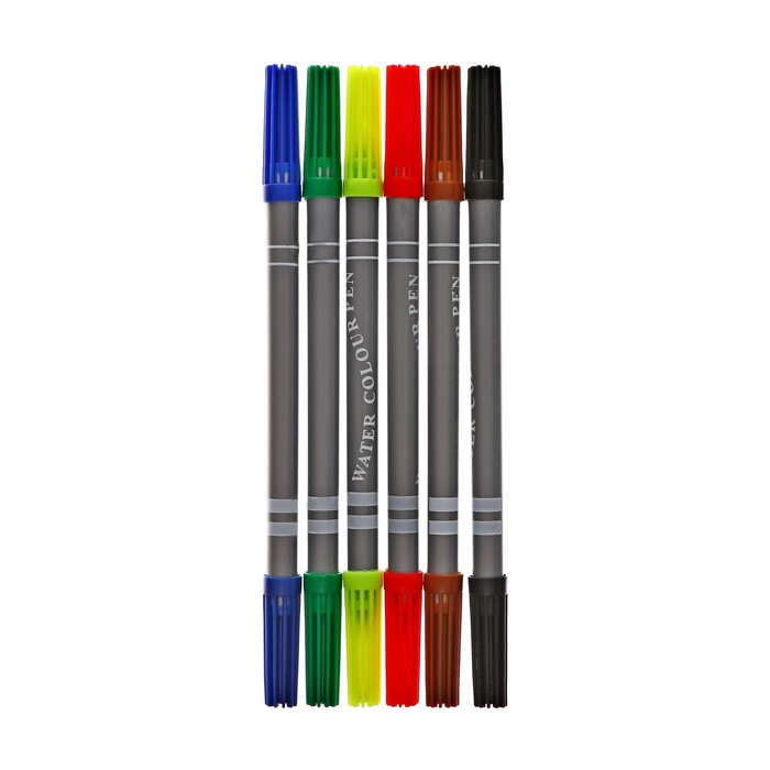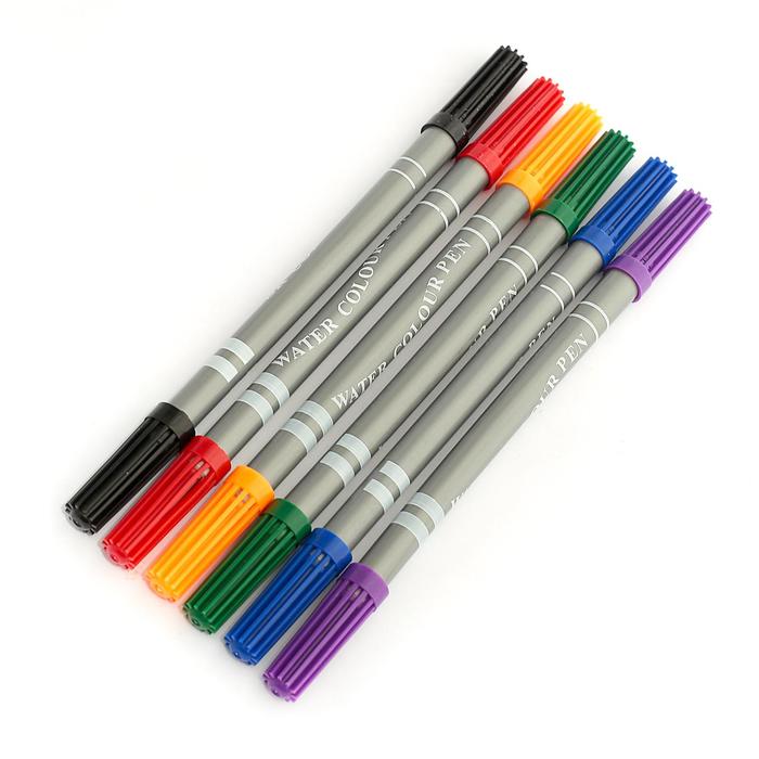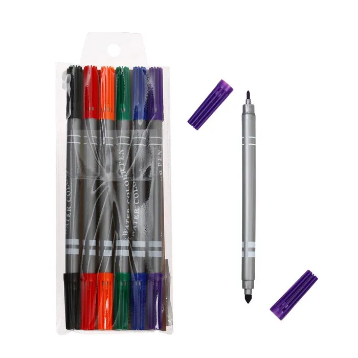 Фломастеры, 6 цветов, двусторонние, круглый наконечник 2 мм/5 мм, вентилируемый колпачок, в блистере — Характеристики