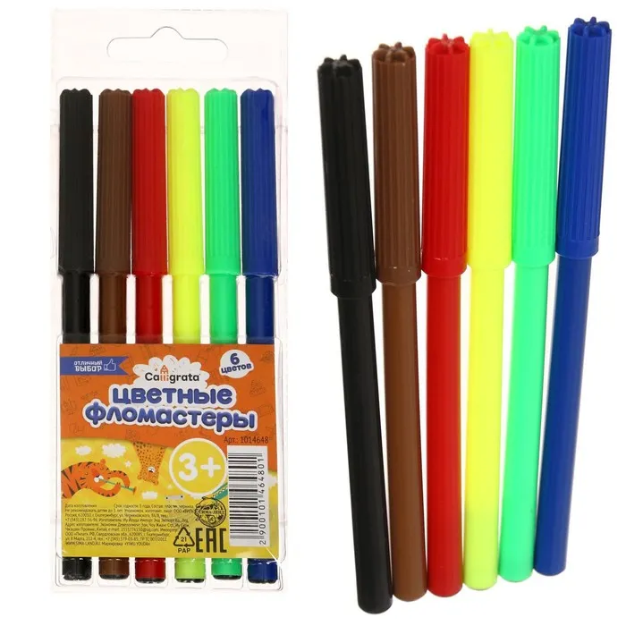Вентилируемый колпачок обеспечивает безопасное рисование для ребенка .Идеально подходят для детей от 3-х лет и для тех, кто только начинает свой творческий путь.Фломастеры состоят из пластика, чернил.Упаковка представлена в виде PVC пакета.Благодаря фломастерам Calligrata Вы сможете воплотить все свои творческие фантазии в реальность.