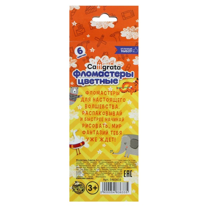 Набор фломастеров содержит 6 ярких и насыщенных цветов.