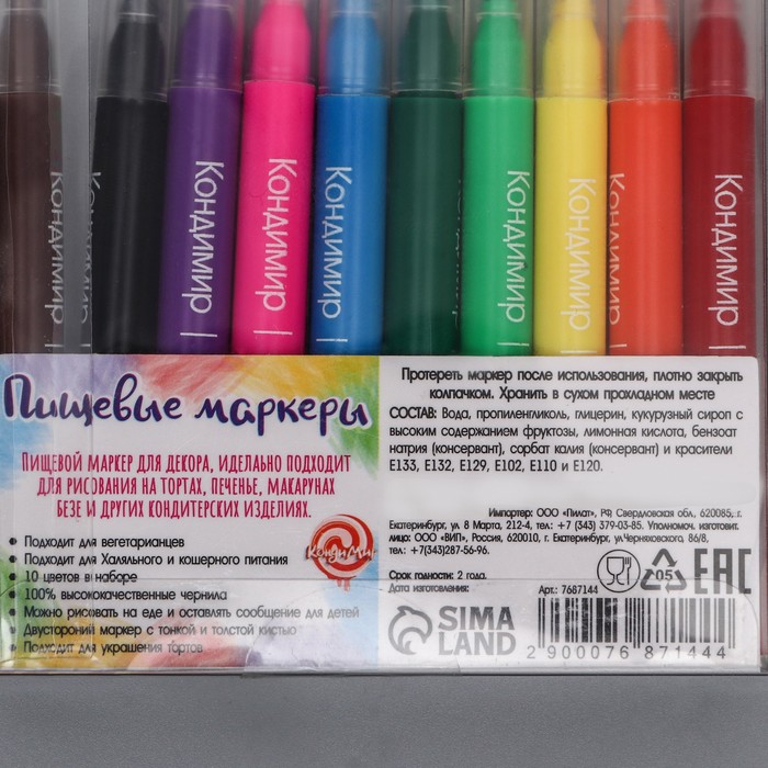 Фломастеры пищевые, набор, 10 шт — Характеристики