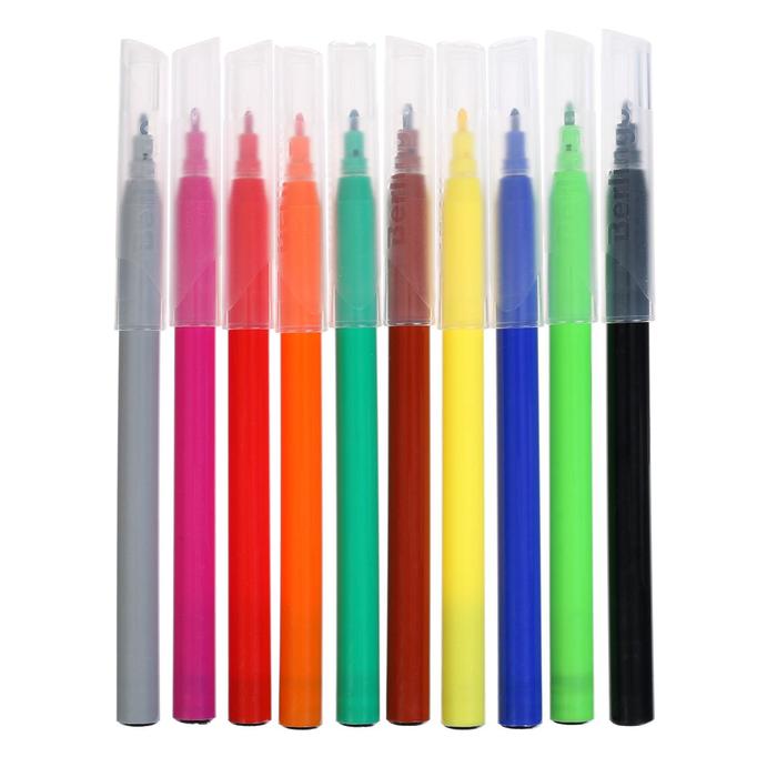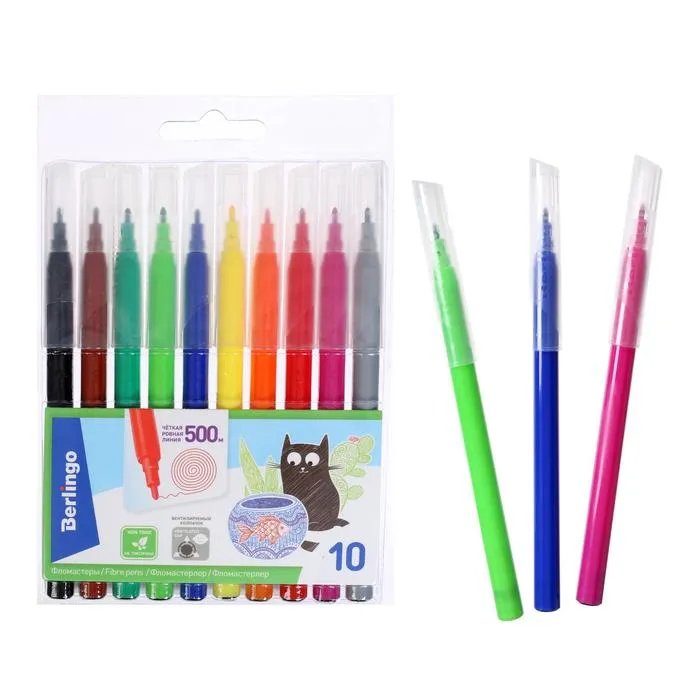 Легкосмываемые чернила, вентилируемый колпачок, нетоксичны, корпус изготовлен из полипропилена. Упакованы в блистер с петлей-европодвесом. Длина линии не менее 500 метров.