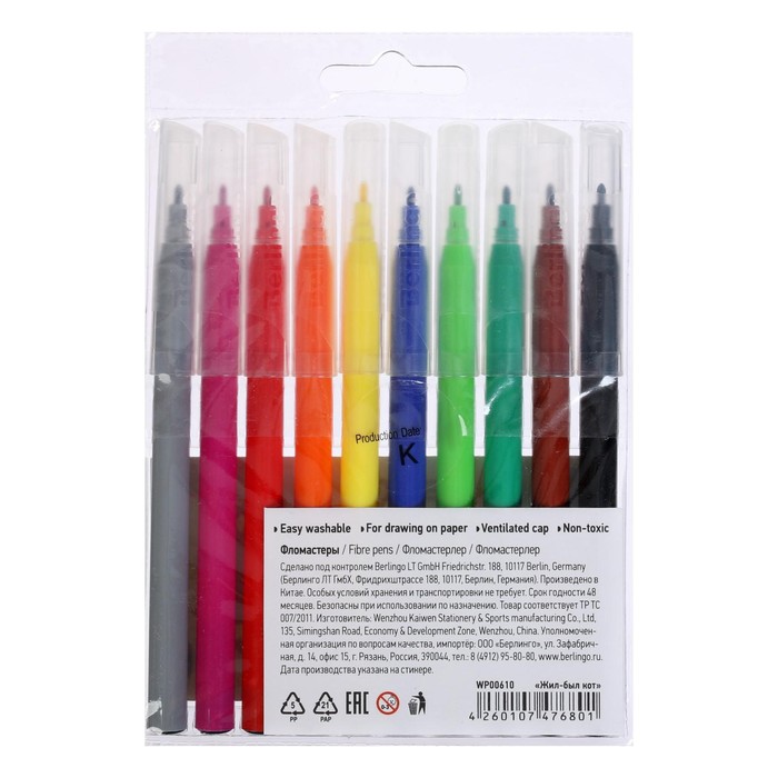 Фломастеры смываемые 10 цветов «Жил-был кот», блистер, европодвес — Характеристики