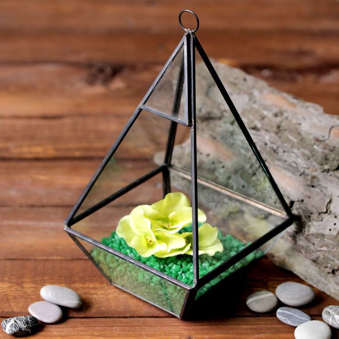 Черный флорариум с прозрачным стеклом — стильный акцент для интерьера или необычный подарок. Компактный формат подходит для размещения на столе или подвешивания. Внутри можно создать мини-сад с суккулентами, мхом или декоративными элементами — стеклянные стенки дают обзор со всех сторон.