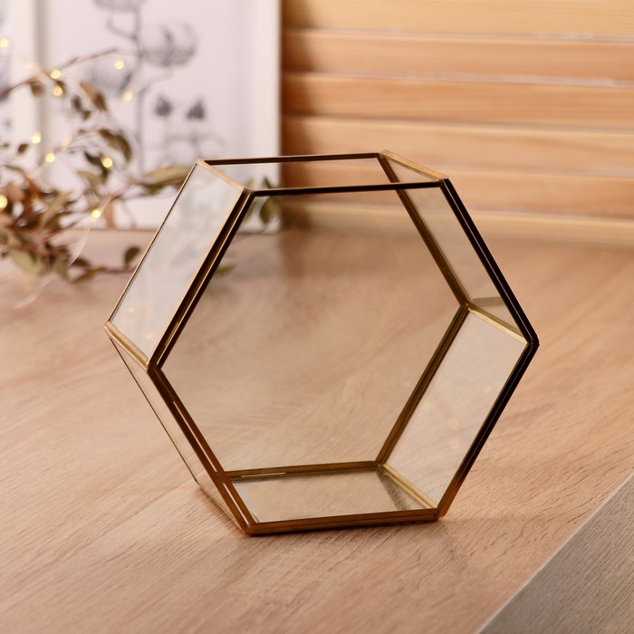 Флорариум каркас, 14.5×14.5 см, стекло, золото