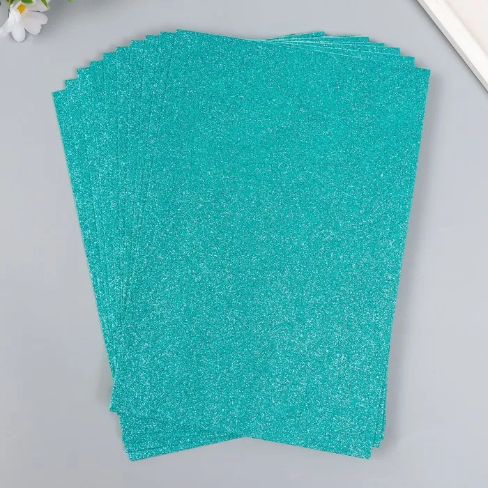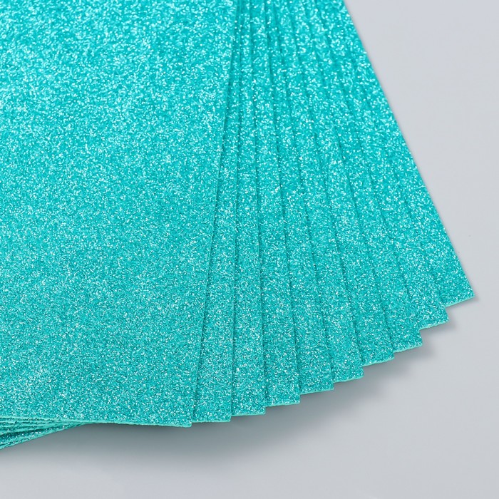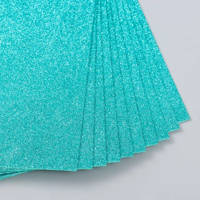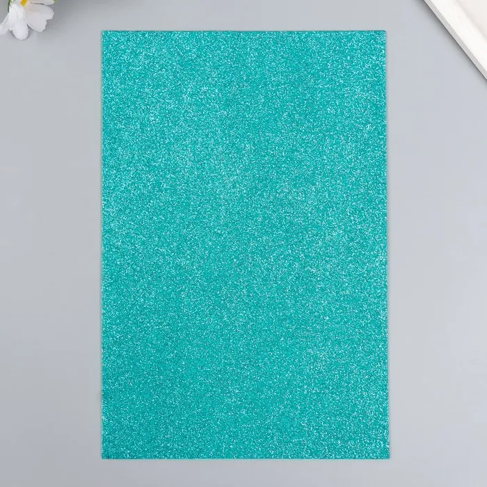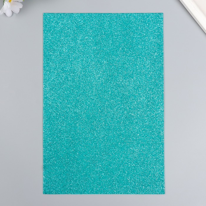 Фоамиран глиттерный 2 мм 20х30 см, бирюзовый